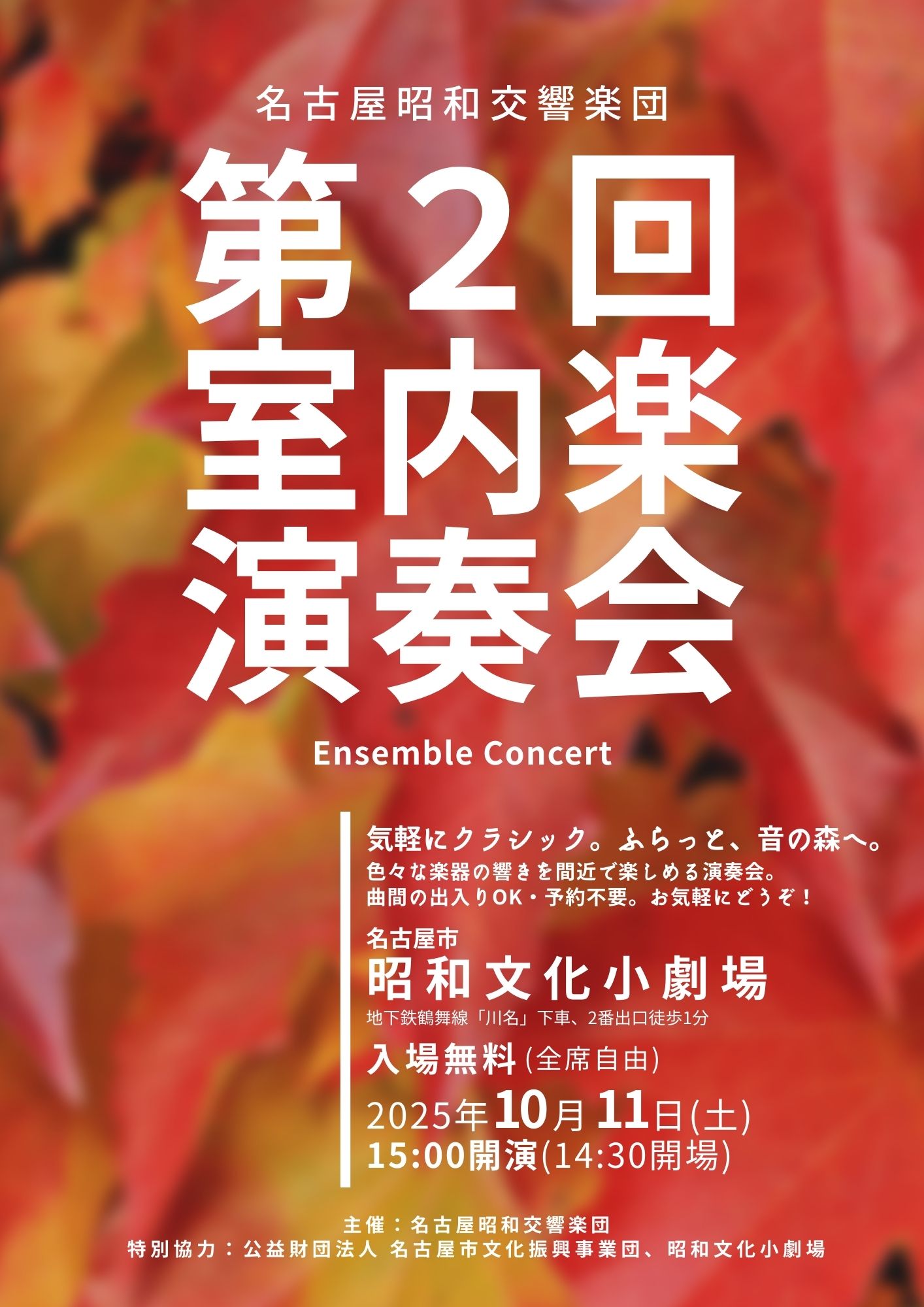 それぞれの楽器の魅力をじっくりと味わえる演奏会です。曲間の出入り自由、入場無料の演奏会ですので、どうぞお気軽にご来場ください!